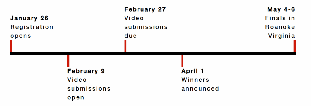 - Travel to Roanoke, Virginia to compete for cash prizes